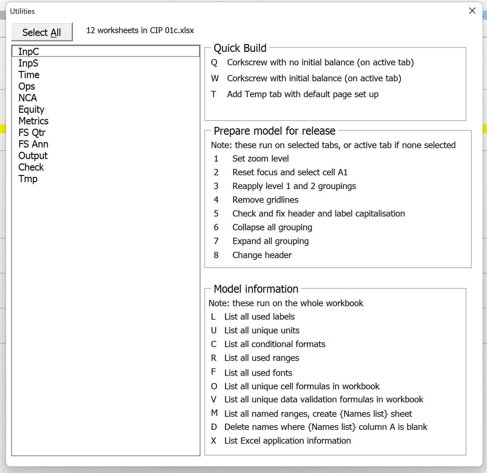 We can either keep a template corkscrew on the Tmp sheet and copy it each time we need a new corkscrew. Or we can use the Productivity Pack automated corkscrew builder.