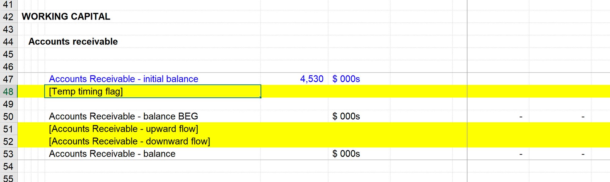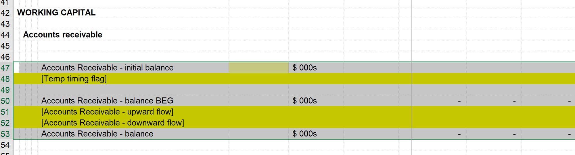 In the next section of the Handbook, we'll use this skill frequently as we build out the model step by step. For now, let's imagine that we are about to start modelling Accounts Receivable and need a balance corkscrew.