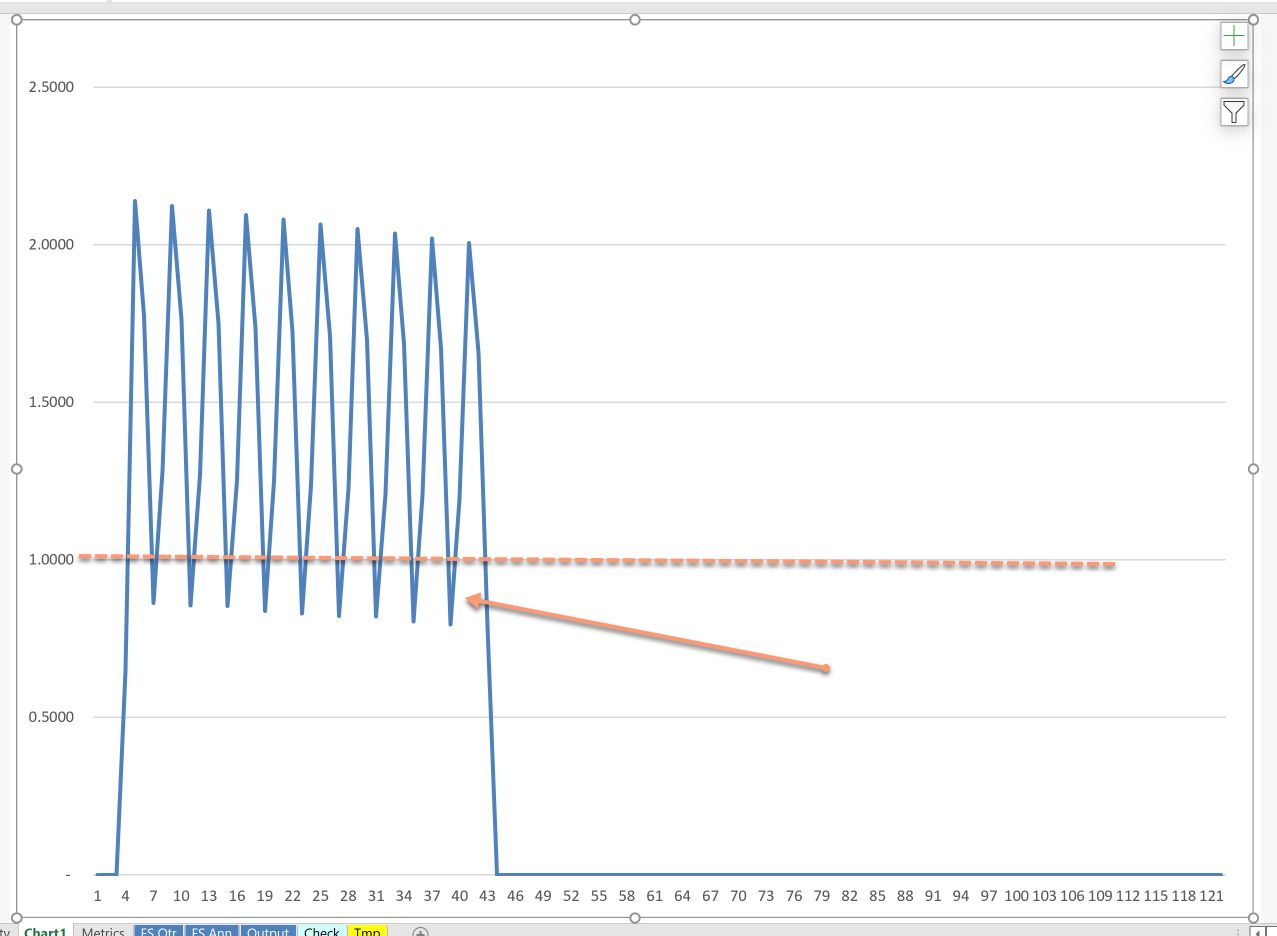 We can see that the minimum ratio is below 1. This is another way of observing what we have already seen; in the first period, there is not enough cash flow to make the debt service payments due in that period.