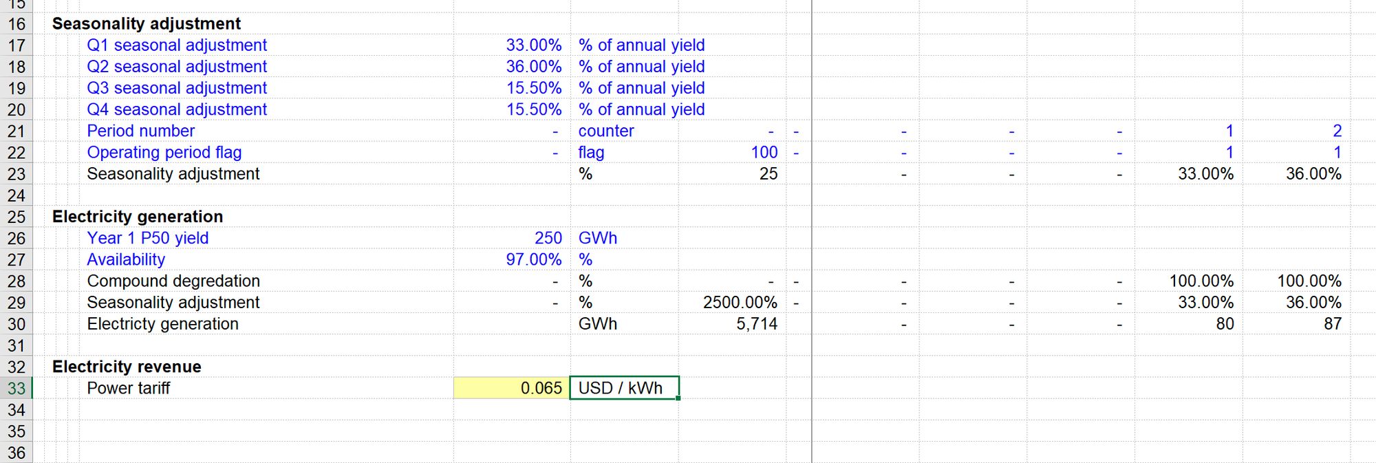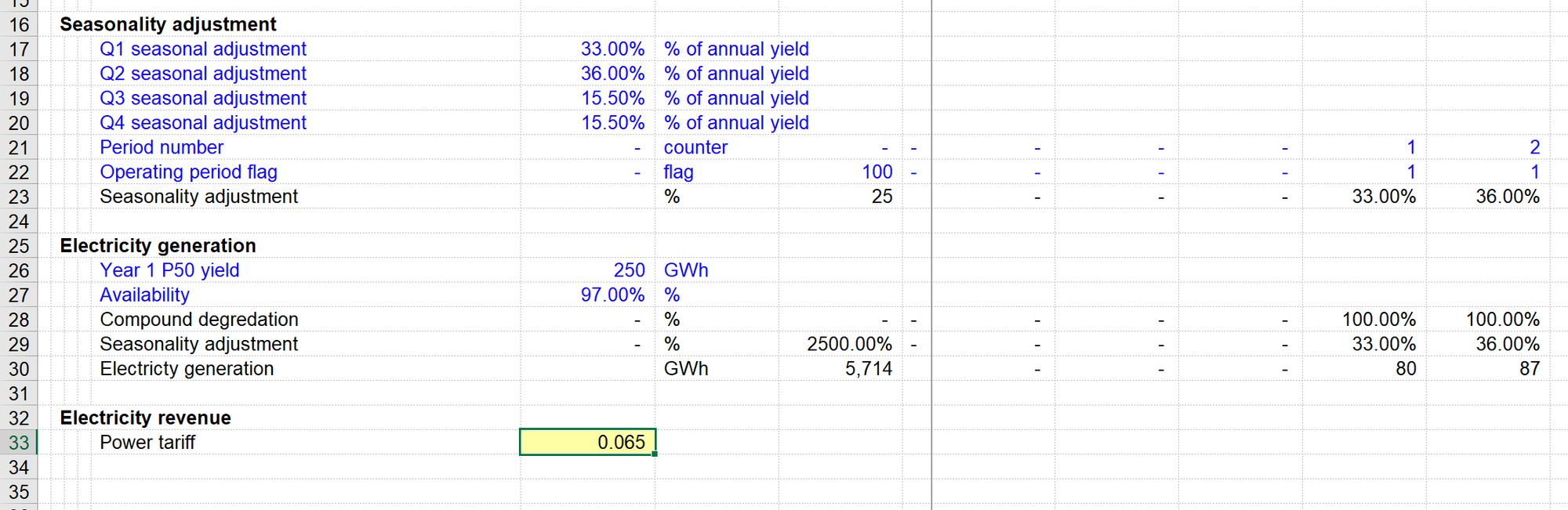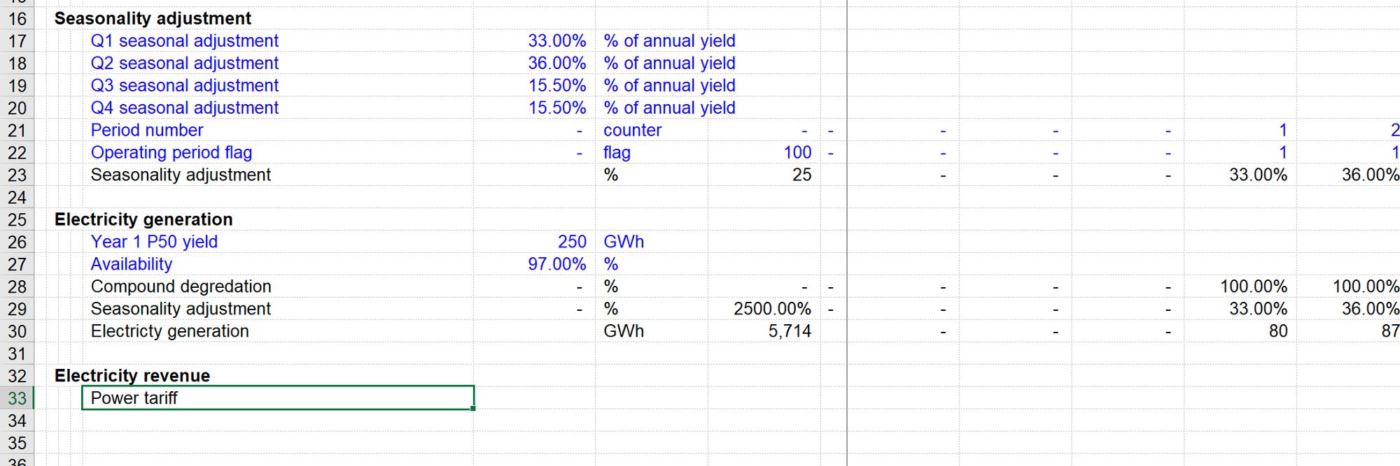 I find it helpful to quickly and easily add inputs where I am working, as I build up calculation blocks. It makes it easier and quicker to test calculations with different values. Don’t worry - we are not going to leave our model like this. All of our inputs will be relocated to the input sheet when we complete a section of modelling.