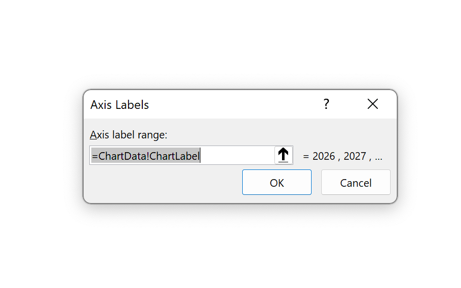 To have the chart display the years, we will have to use a Named Range to refer to the years that we want to show on the X-axis.
