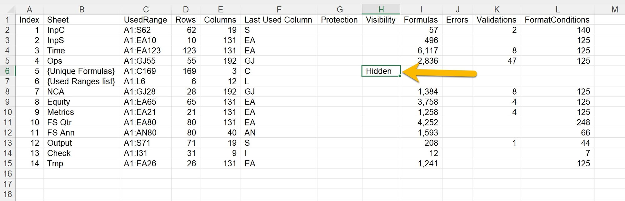 We've updated the Used Ranges report from the Productivity Pack to include and highlight hidden sheets.