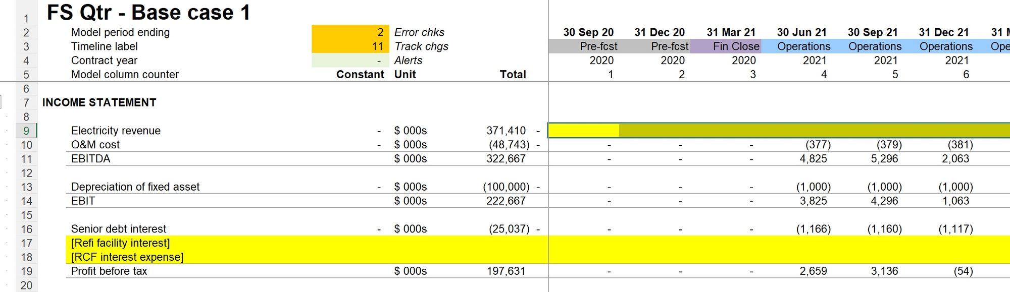 - Are the correct line items connected to the financial statements? You can tell this by looking at the labels. (Assuming you have been consistent in your linking and all the links start on the row label column and are copied across correctly).