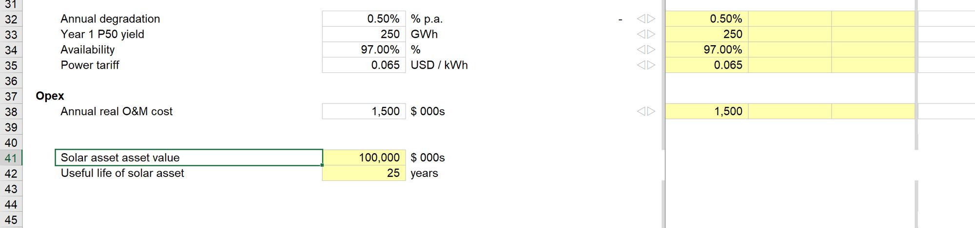 However, when we are building up the calculations in our model, it can be helpful to add the inputs as we go, right there on the calculation sheet.