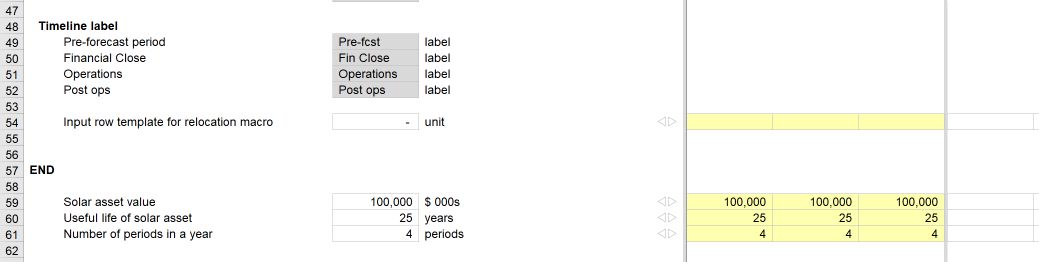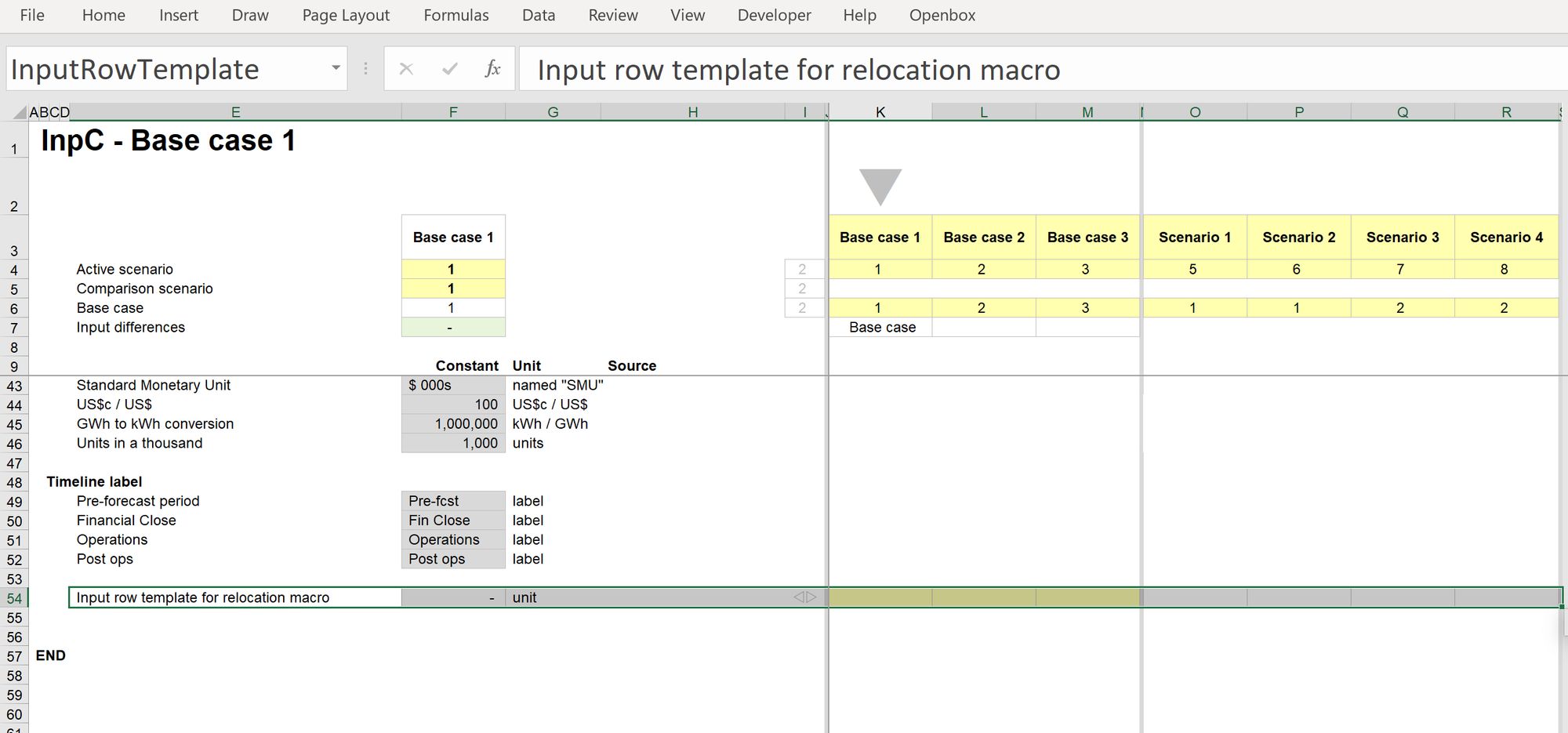 Step 3: Copy the "scenario" infrastructure from a nearby row on the input sheet.