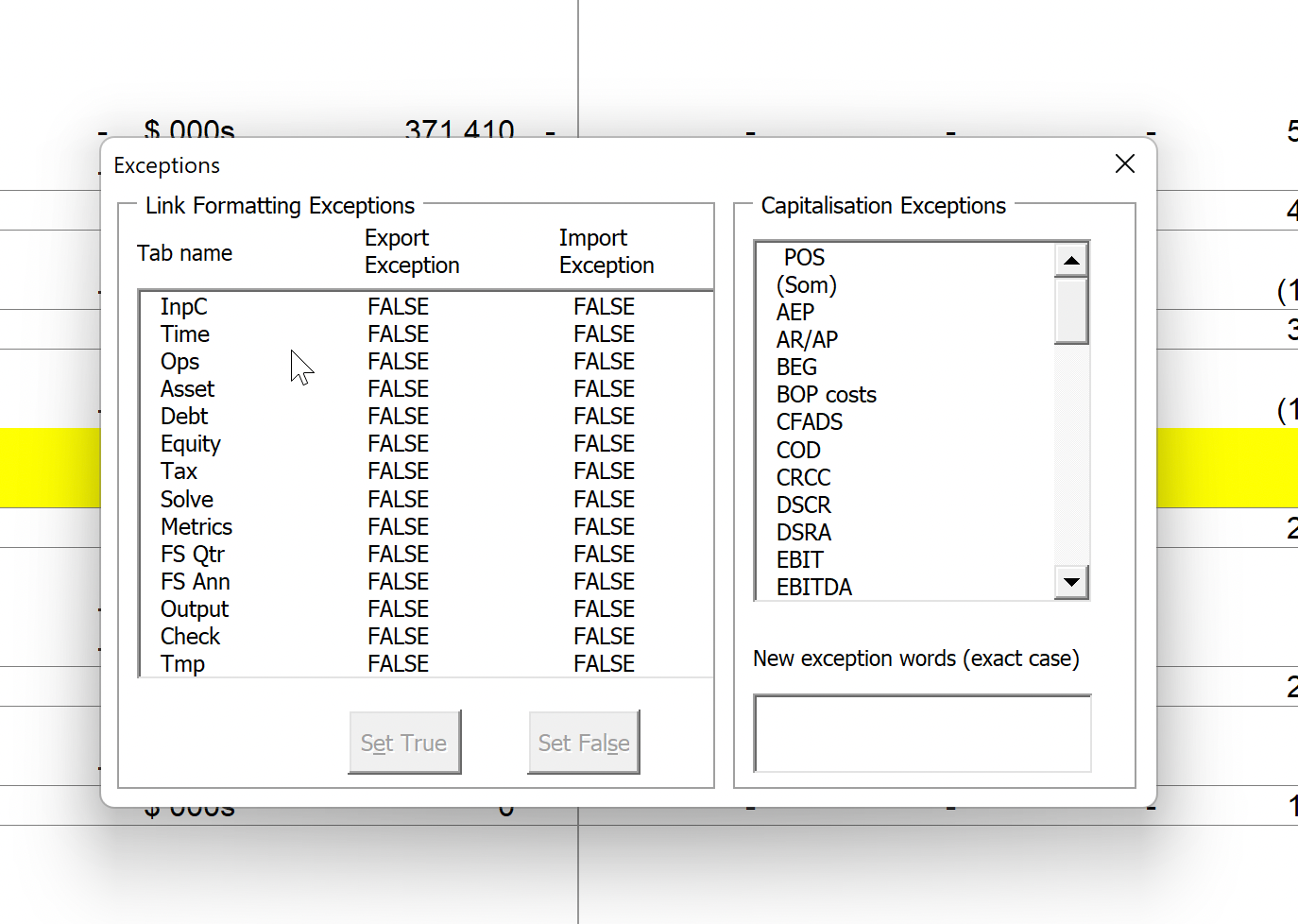 This dialogue handles exceptions for import / export marking as well as label capitalisations. We're only going to discuss import / export marking in this section.