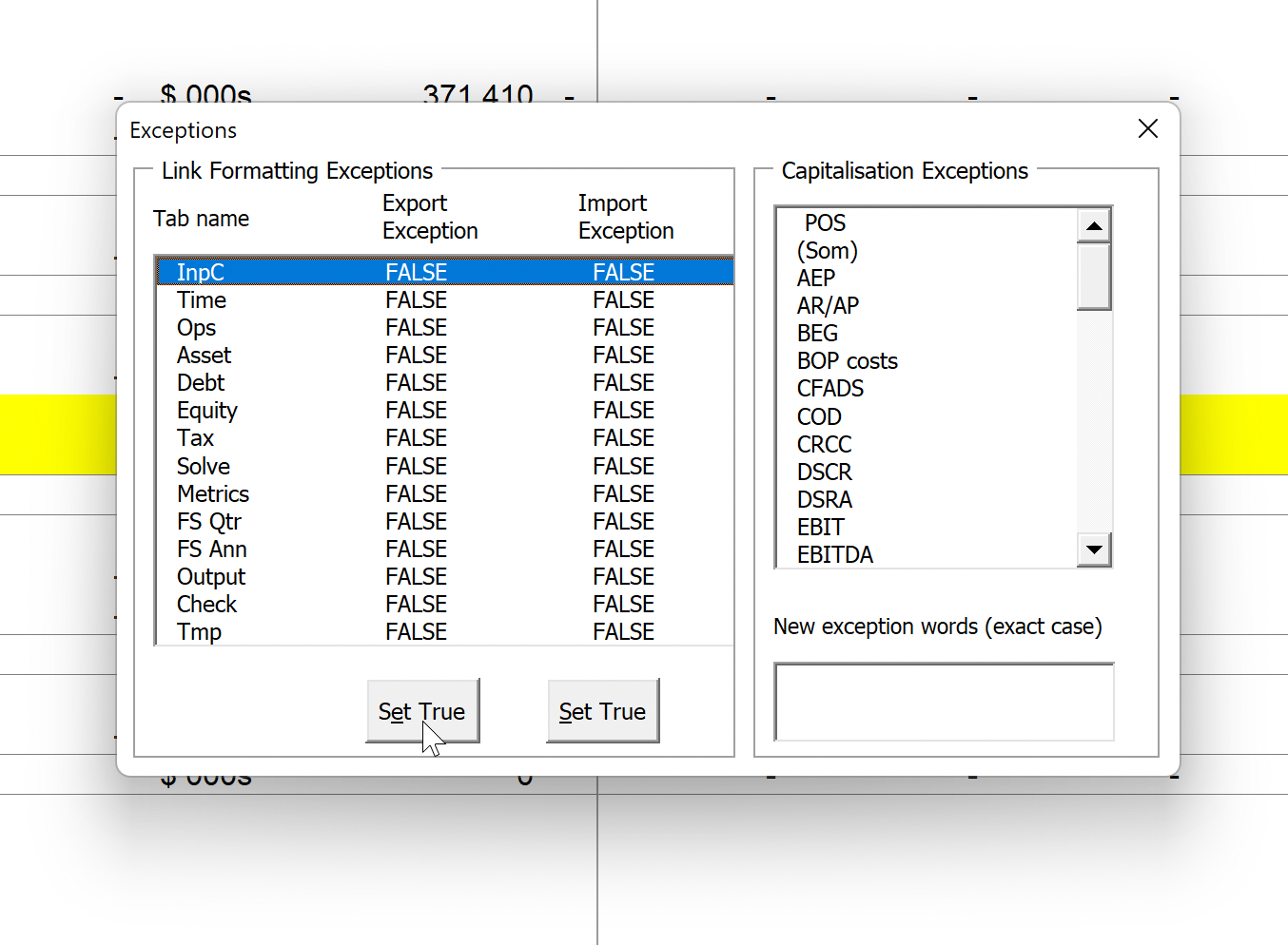So, to prevent items on the InpC from being marked as exports, first, select the sheet and click on Set True under Export Exception: