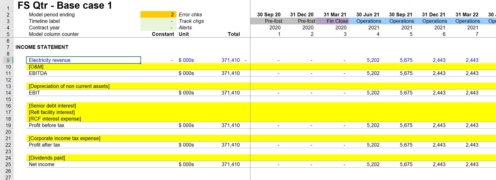 I have also linked the revenue into the income statement: