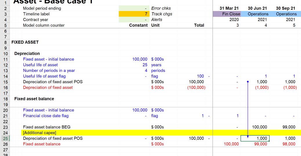 - The $100m fixed asset initial balance. I copied the link from the top of the fixed asset corkscrew using Skill 4