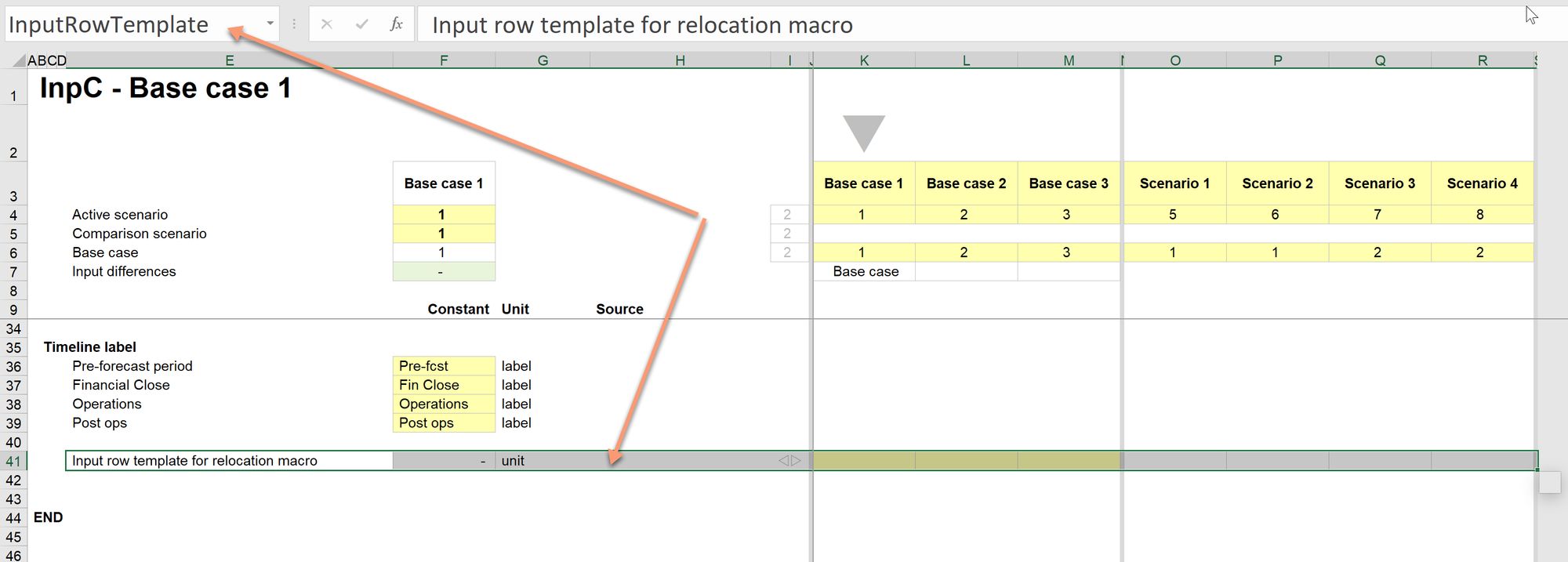 The input relocation macro also needs to know the structure of the standard input row. The scenario input structure should have a template line named InputRowTemplate. See the reference start model for an example of how this should be set up.