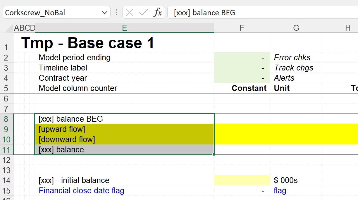 The macro to quickly build a corkscrew without an opening balance will use the corkscrew where the name has been applied as a template. If this name is missing from the active file, the corkscrew will still work but the corkscrew will not be a match to the template corkscrew in your Tmp file.