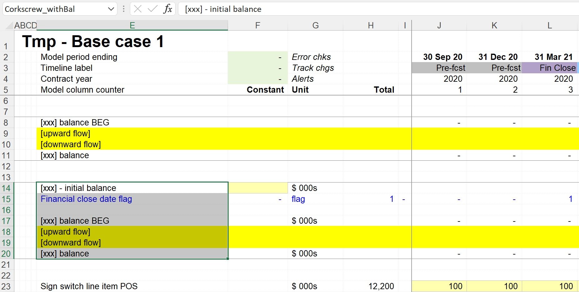 This operates in the same way as the template for the corkscrew without an initial balance. Note, if the range name is used, and there is a flag in the named, template corkscrew, this will be copied into the quick build version.
