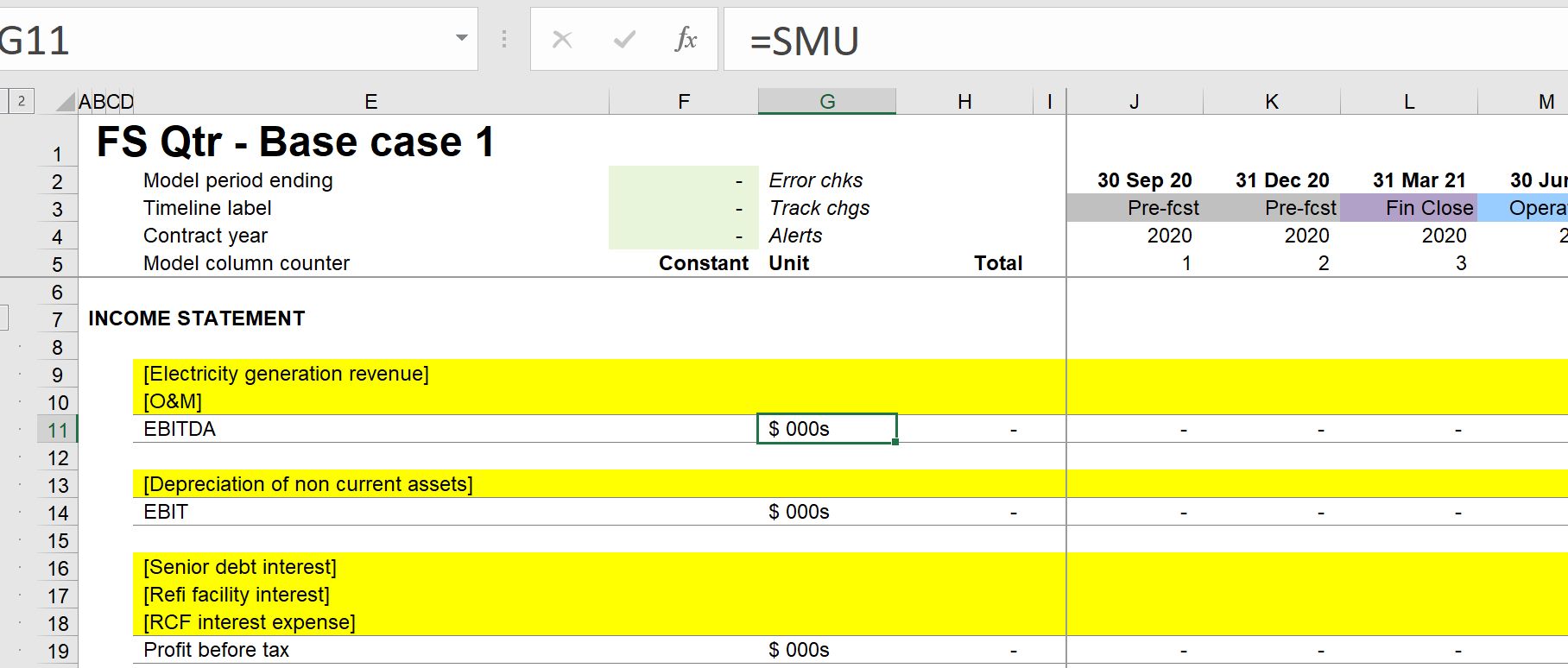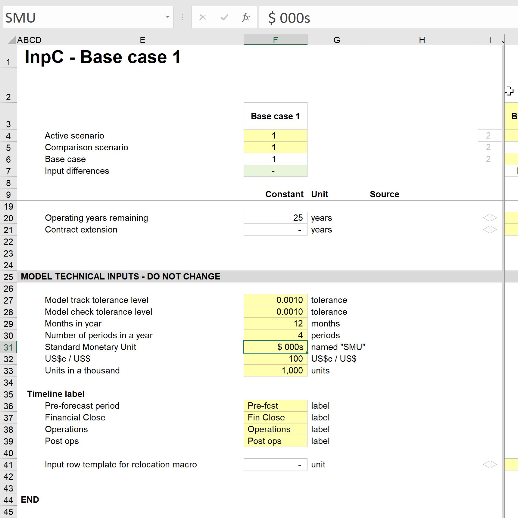 - It ensures unit consistency throughout the model (otherwise, it's common to mix "USD 000s" and "$ 000s" and "US$ 000s" in the same model.