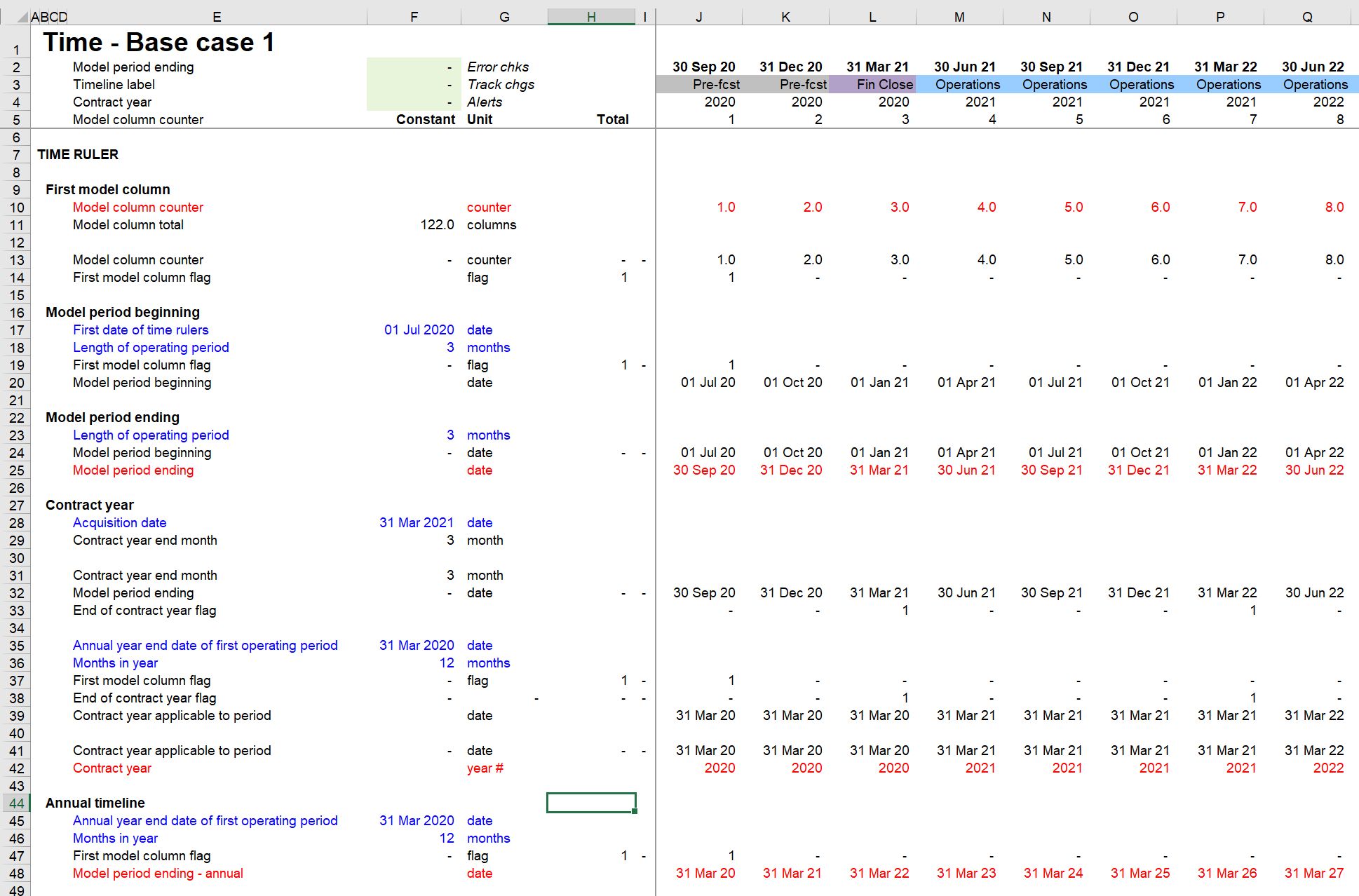 The time sheet in our start model already has quite a lot of sections. Although the heading in Columns A and B help us to navigate, it's hard to avoid getting lost in the weeds.