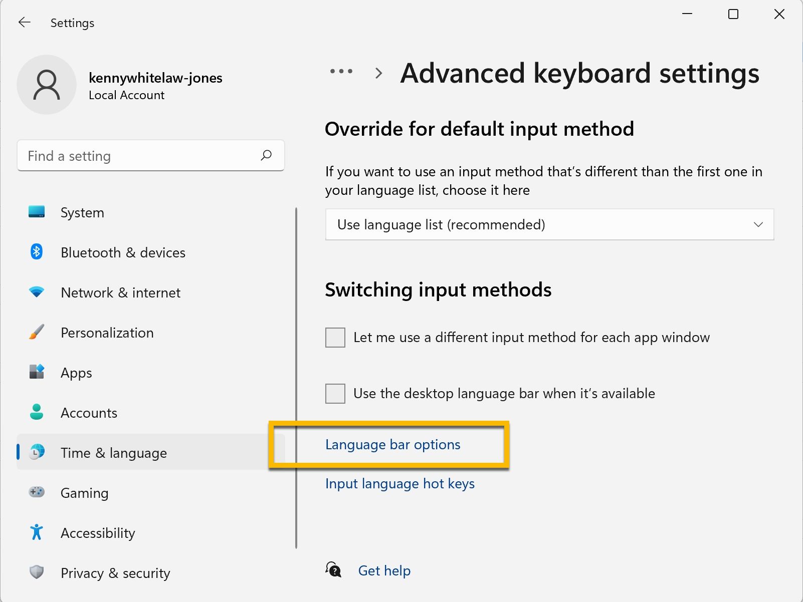 4 From the Advanced keyboard setting dialogue, Select Language Bar Options
