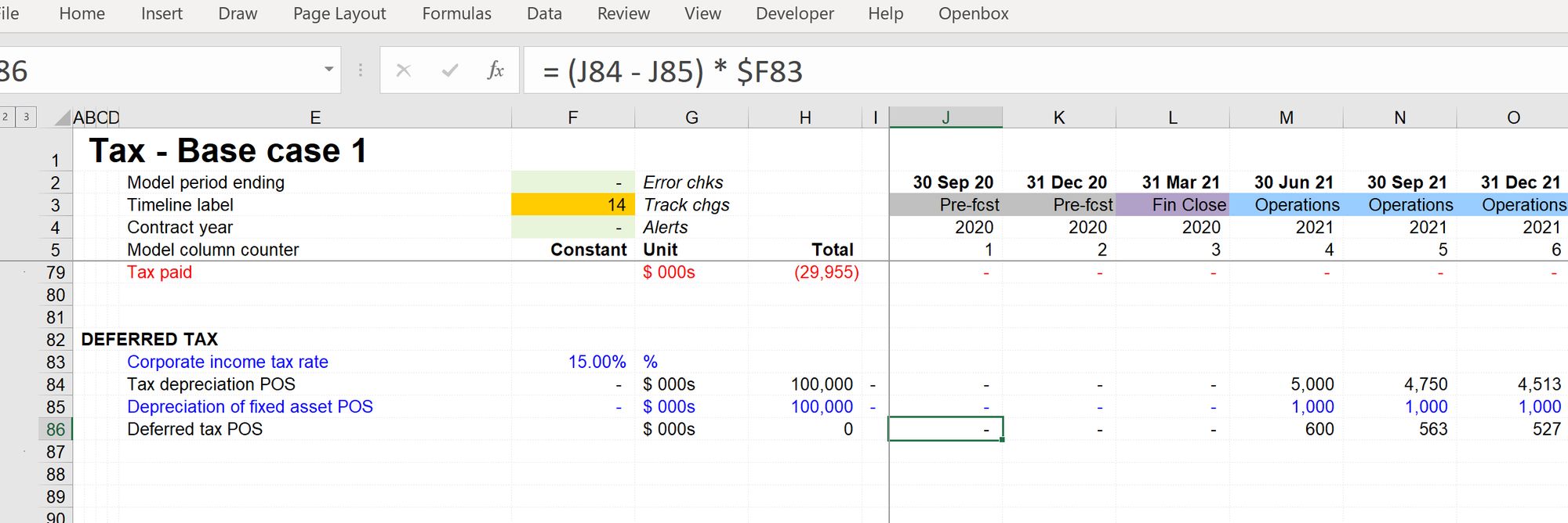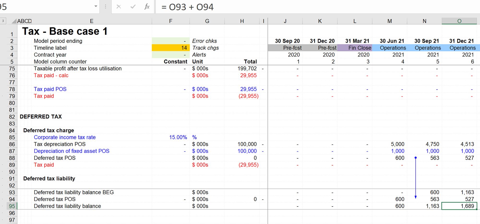 - Intermediate totals. In our case, we'll need to amend the calculation of Profit Before tax to include the new Deferred Tax line. I have seen SO many model errors caused by modellers forgetting this step.