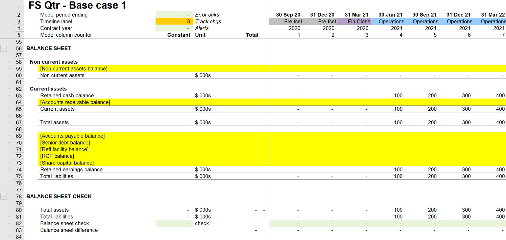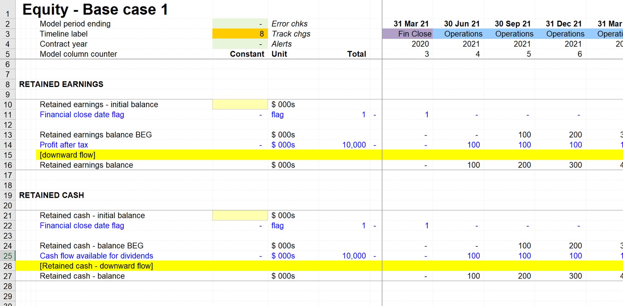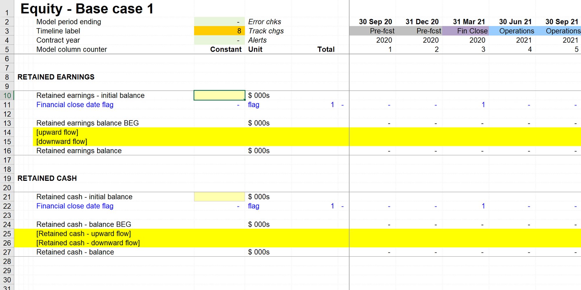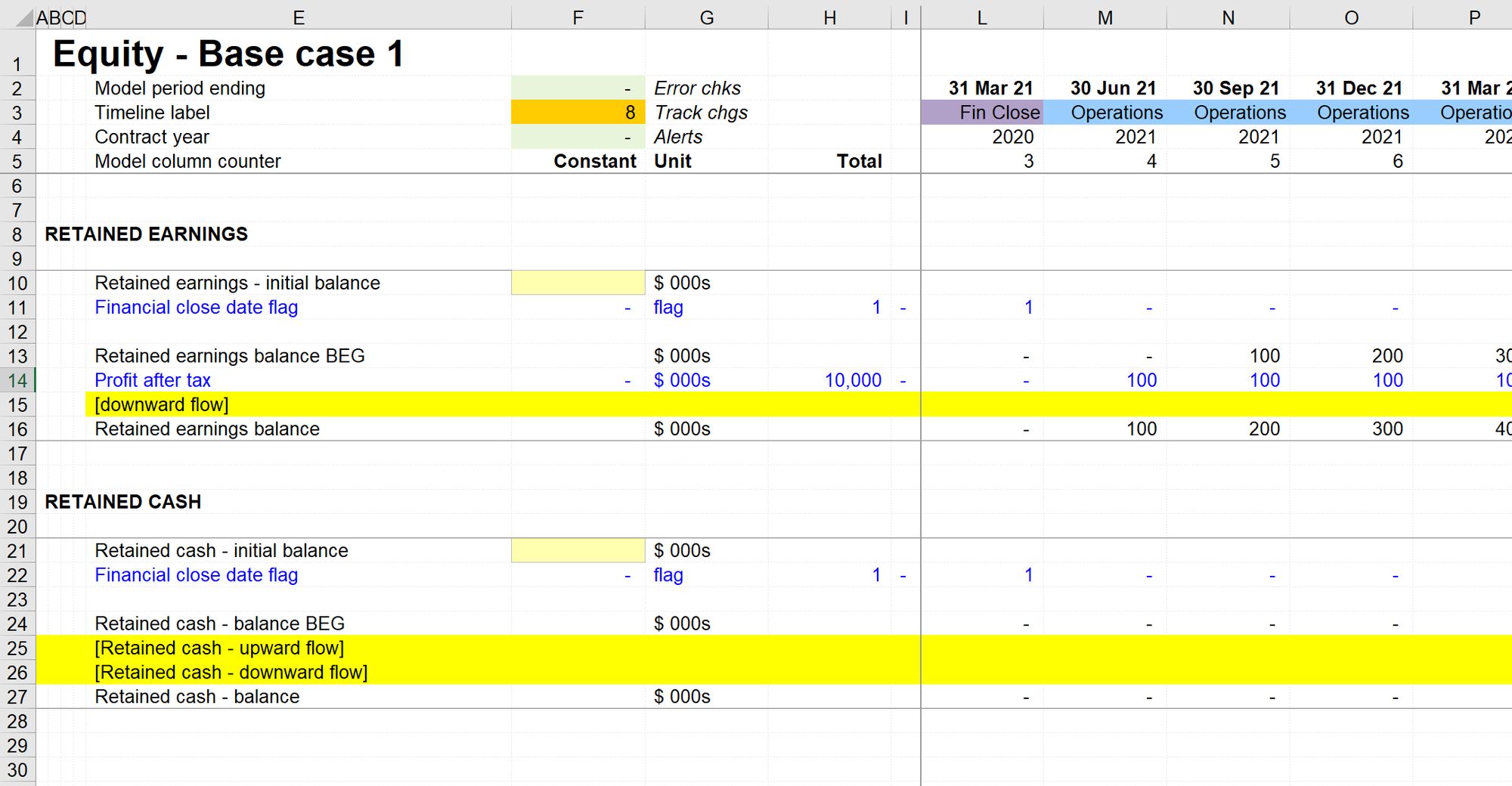I recommend that you start with setting up your retained earnings and retained cash balances. These two balance mechanisms are core to how the three financial statements in our model "hang together" and affect each other.